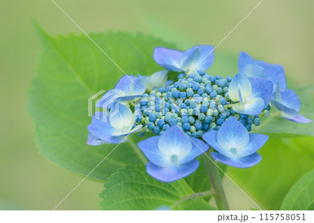 岩手県一関市舞川原沢 紫陽花の名所みちのくあじさい園 杉林のカシワバアジサイと青いヒメアジサイの群生