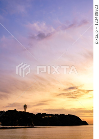 夕焼けに染まる江の島シーキャンドルの美しい景色