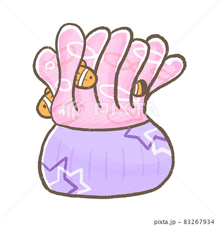 カクレクマノミとイソギンチャク【熱帯魚】の手描きイラスト