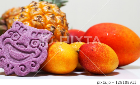 鮮やかな色彩の沖縄南国フルーツとシーサーのクッキー