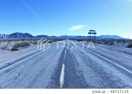 カリフォルニア州、ルート66、アンボイゴーストタウン付近の一直線道路