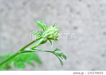 アイリスの蕾と真っ白なレースの花オルラヤ