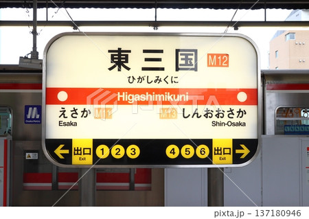 [M12]東三国駅(大阪メトロ御堂筋線:駅名標)