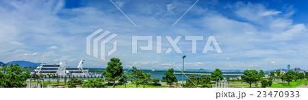 夏の終わりの琵琶湖。大津港周辺の湖畔の風景