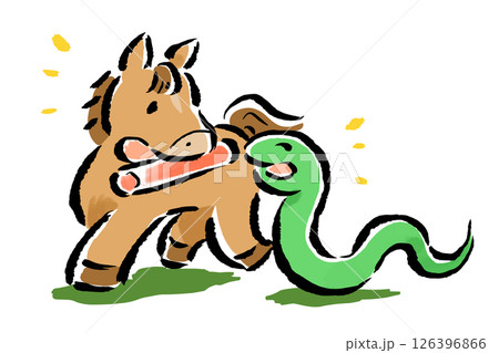 巳年から午年へ バトンタッチをする蛇(巳)と馬(午)