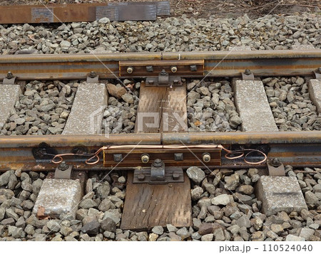 鉄道のある風景(線路のレールをつなぐ継目板とバラスト)