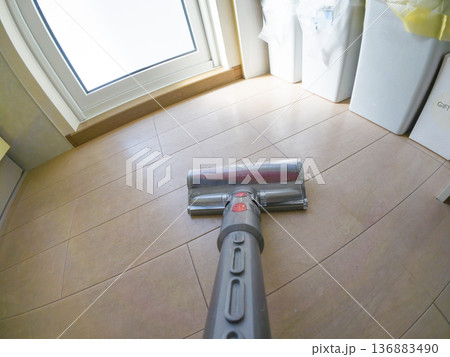 掃除機をかける男性(POV オーセンティック表現)