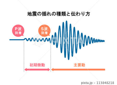 地震の揺れの種類と伝わり方のグラフイラスト(文字なし)