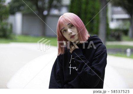 ピンク色の髪の女性デザイナー