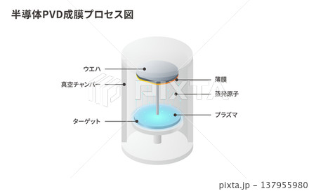 半導体PVD成膜プロセス図 真空中スパッタによる薄膜形成装置