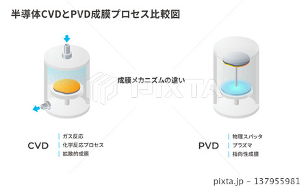CVDとPVDの成膜プロセス比較図 半導体薄膜形成方式の違い