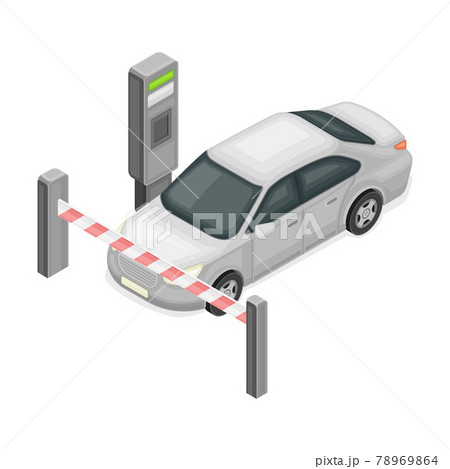 Chargeable Parking Facility with Car Standing in Front of Auto Barrier Isometric Vector Illustration