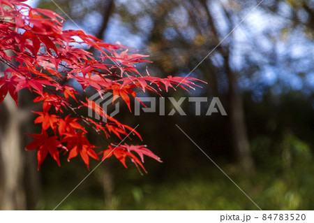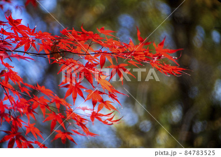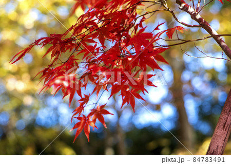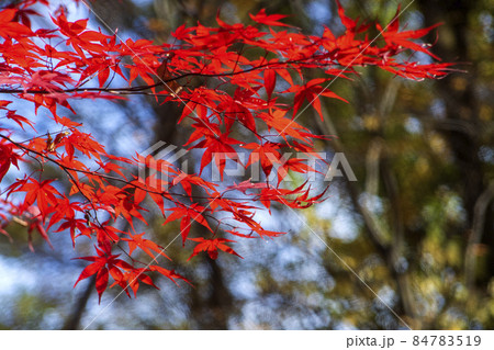 晩秋の武蔵野の雑木林を真っ赤に彩るモミジの紅葉