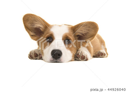 Brown and white welsh corgi pembroke puppy lying