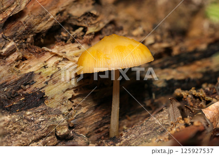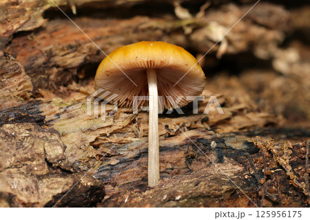 オレンジ色でもウラベニガサ属の茸(自然環境下ストロボマクロ撮影)