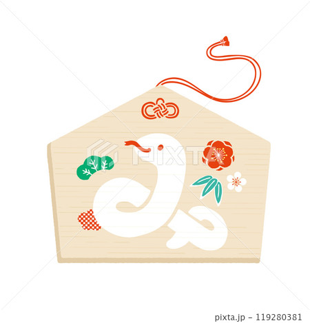 筆文字で書かれた巳文字の破魔矢(年賀状素材)