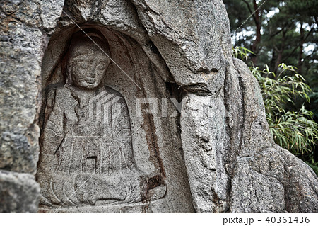 Buddhist statue group at Mitaki-Dera temple in Hiroshima, Japan