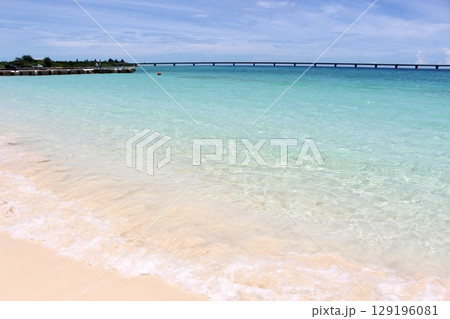 沖縄県慶良間諸島嘉比島の素晴らしい白砂のビーチと美しいコバンアジの群れ