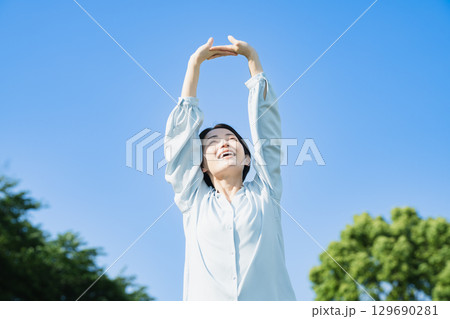 屋外でストレッチをする若い女性 ライフスタイルイメージ