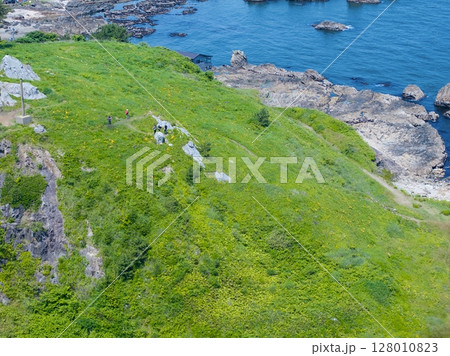 「青森県」渚に花咲く初夏の種差海岸・八戸市