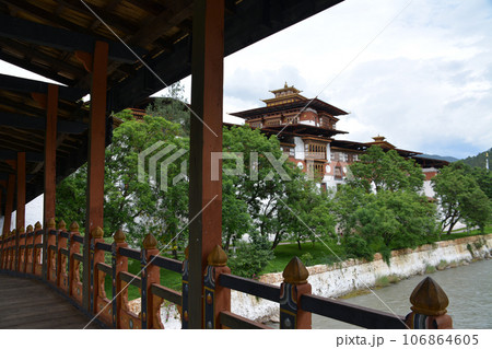 幸せの国ブータン プナカ・ゾンへの橋の入り口(Punakha, Bhutan)