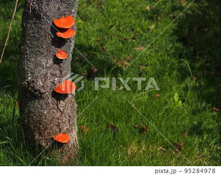 Pycnoporus coccineusの画像素材(写真・イラスト)は30件あります。この検索結果では、茸、キノコ、きのこ、扇、菌類、切り株、mushroom、子実体、枯れ木、倒木、ヒイロタケ、緋色茸、幼菌、夏などの絞り込みキーワードがよく使われています。 全て表示