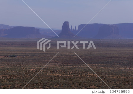 モニュメントバレー入口のミッチェルブートと遠くのアガスラピーク