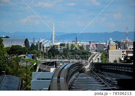 門真市駅行き大阪モノレールからみたエクスポシティ方面を望む。空を多めに