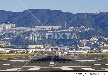 [乗り物]伊丹空港滑走路の風景(千里川土手)