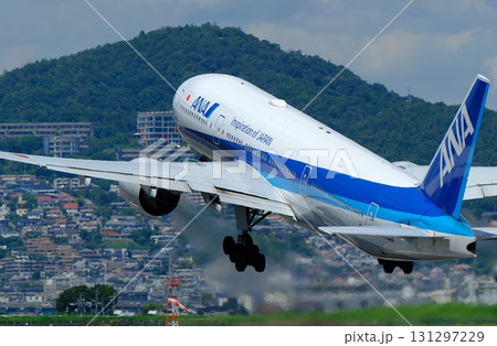 伊丹空港を力強く離陸するボーイング777型機