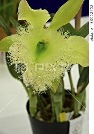 若草色の細かい繊維状髭を持つの蘭の花