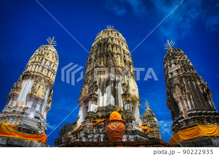 タイ王国ラチャブリの遺跡と青空 Mahathat