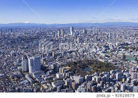 日本の東京都市景観 山々が見える珍景。文京グリーンコートや男体山、大真名子山などを望む