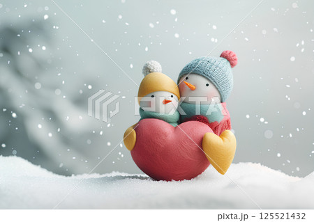 雪の中の可愛い雪だるまと妖精たち(3D)