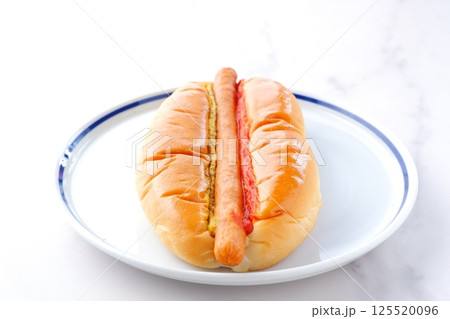 マスタードとケチャップをかけたチョリソー・ソーセージパン(ホットドッグ)