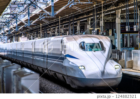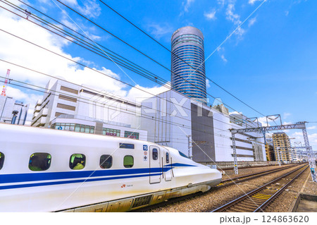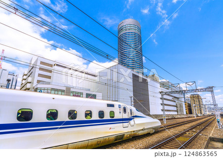 日本の横浜都市景観 インバウンド…新横浜駅の新幹線などを望む。新時代へ…