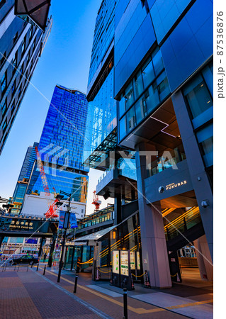 東京 早朝の渋谷駅南口の街並み 渋谷フクラスと渋谷スクランブルスクエア