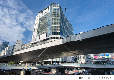 東京 早朝の渋谷駅南口の街並み 渋谷フクラスと渋谷セルリアンタワー
