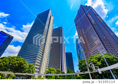 東京 新宿区西新宿の都市風景 新宿野村ビルと新宿三井ビル