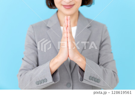 頼み事をするスーツを着たミドル女性ビジネスウーマン