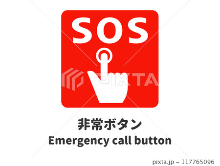 非常ボタン SOS 緊急通報 呼び出しボタンの標識 ピクトグラム 看板 サインのイラスト