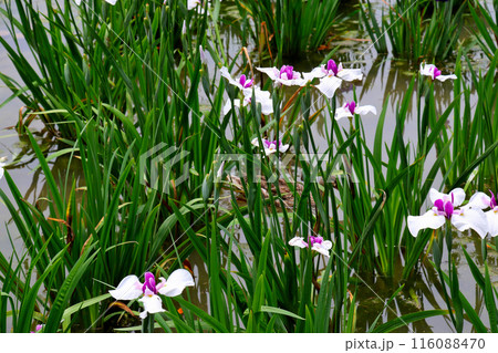 城北公園 菖蒲園 菖蒲とつがいの鴨