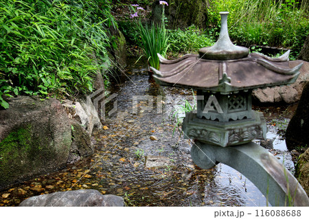 城北公園 菖蒲園 菖蒲 と 蹲(つくばい)