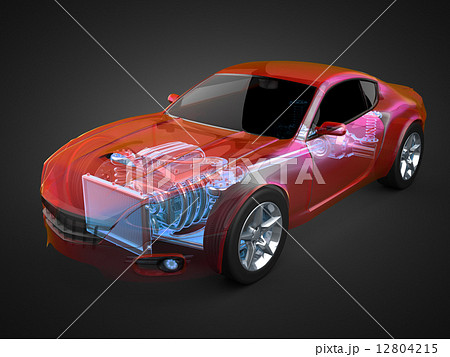 transparent car concept with visible engine and transmission