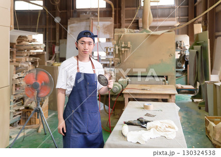 作業服を着た金髪ショートヘアの若い女性(髪色自由、自分らしく働く、職場環境)