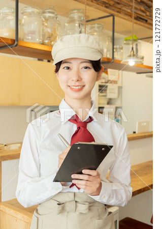 エプロンをした若い女性 ウェイトレス ホールスタッフ