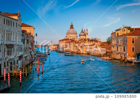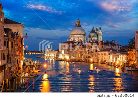 View of Venice Grand Canal and Santa Maria della Salute church in the evening