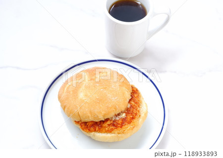 オーストリア発祥のロールパン、カイザーゼンメルに、ハムカツを挟んだサンドイッチと、淹れたてのコーヒー