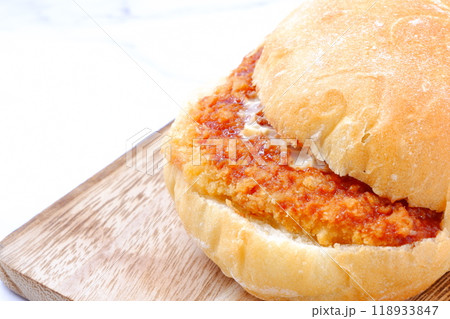 オーストリア発祥のロールパン、カイザーゼンメルに、ハムカツを挟んだサンドイッチ