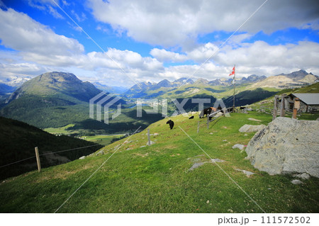 アルプ・ラングアルトからヴェルニーナ山やベッラヴィスタを望む(スイス グラウビュンデン)